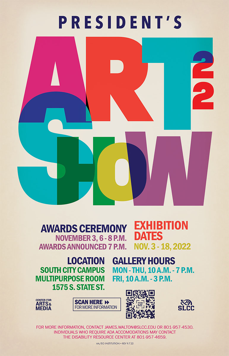 SLCC presents President's Art Show, our annual, juried exhibition that awards $5,000 in prize money, and is open to all Utah artists—amateur or professional.