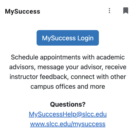 - Who is my Academic Advisor: https://www.slcc.edu/academicadvising/find-your-advisor.aspx