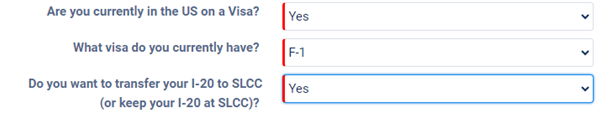 - Do you want to transfer your I-20 to SLCC? Select “Yes” if you want to transfer.