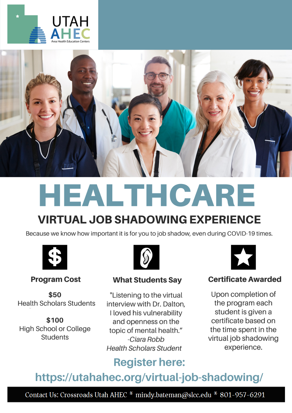We offer virtual job shadowing for the following fields: