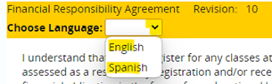 4. Click "Sign Agreement Form." You can choose your language in the drop-down box; we currently have an English version or Spanish version. Read the agreement.