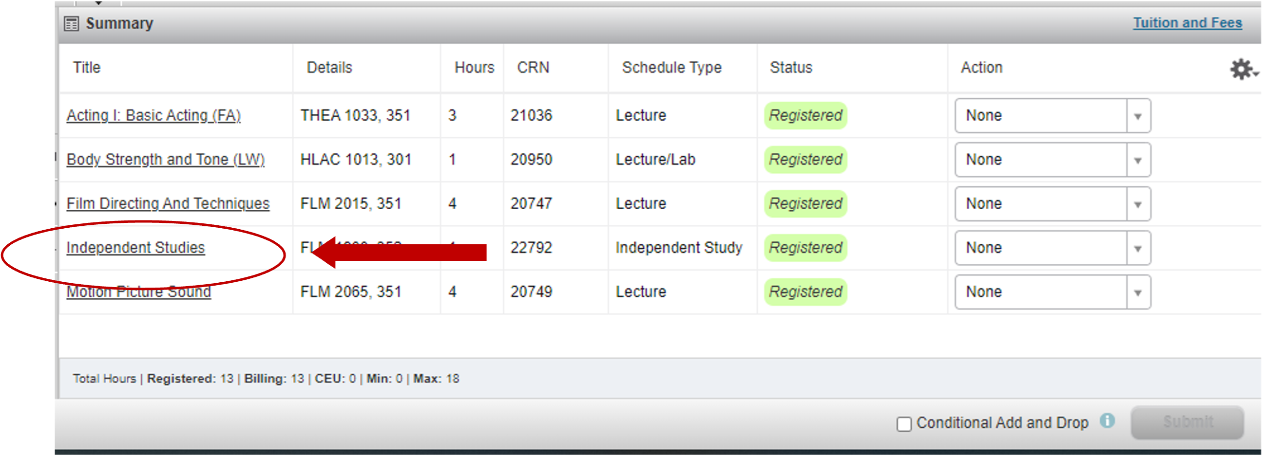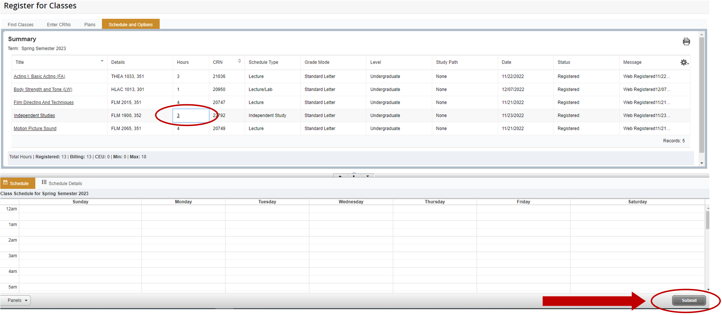 3. After entering the desired number of hours, click Submit. You have successfully changed the credit hours for your variable credit-hour course