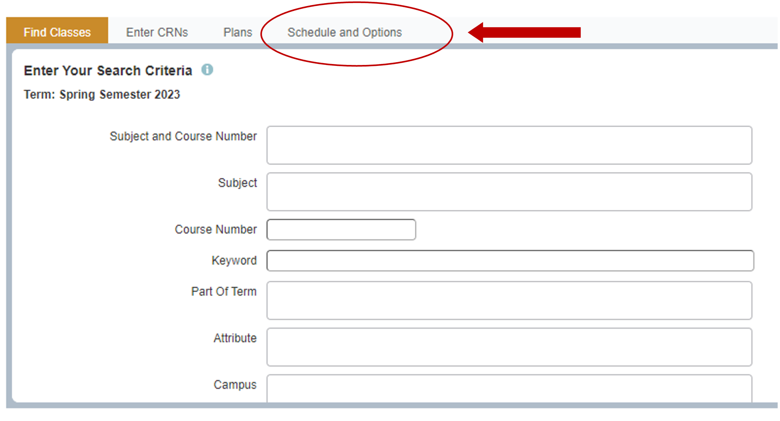 1. On your Register for Classes page, above the Search Criteria box, click on the Schedule and Options tab
