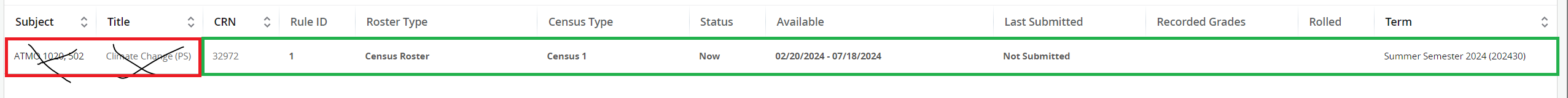 - To open the class roster, Click anything but the Title and CRN link ( See image below)