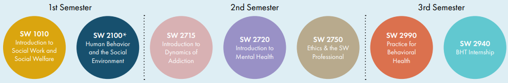 The SLCC BHT certificate training is open-enrollment and does not exclude prospective students based on admissions criteria. BHT coursework may be completed in 2 semesters (full-time) or 3 semesters (parttime) and was developed to overlay the Social Work associate degree. Therefore, by completing the BHT certificate, students will automatically complete all core Social Work associate degree course requirements.