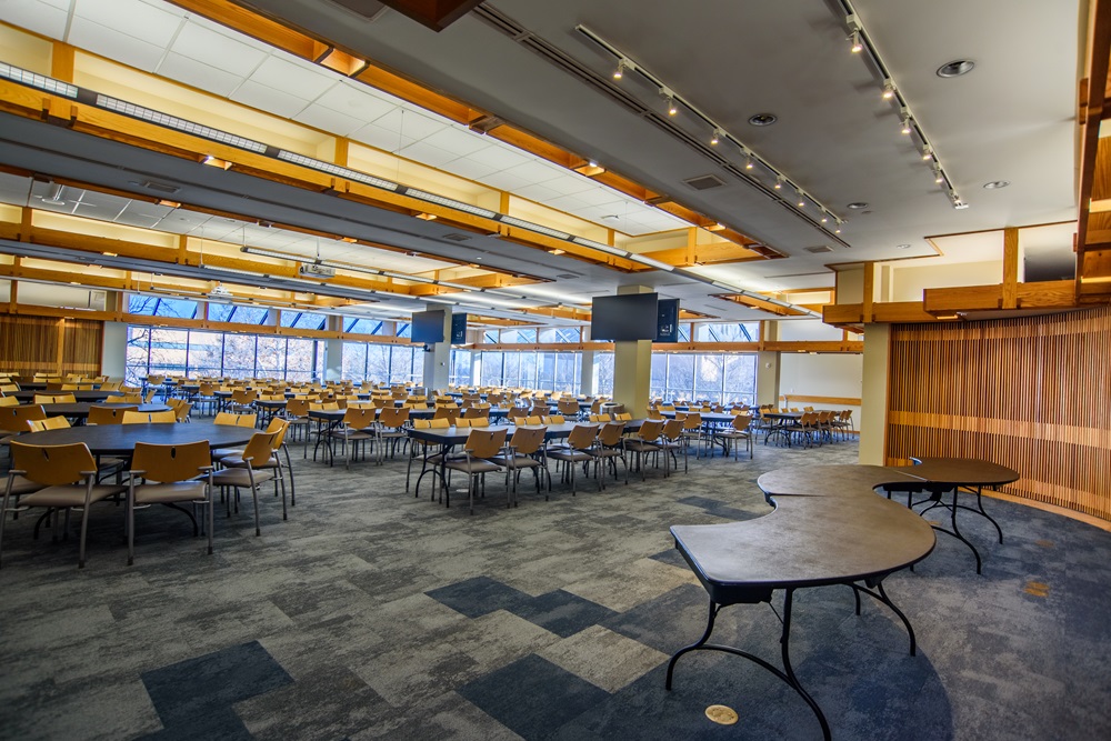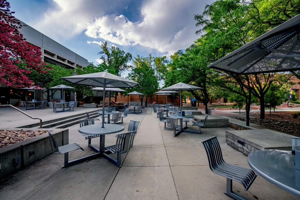 The West Patio can be used as an extension of the Student Event Center (SEC) or on its own. It is furnished with outdoor furniture that can seat up to 120. This patio is a great space for summer barbecues or other outdoor events.